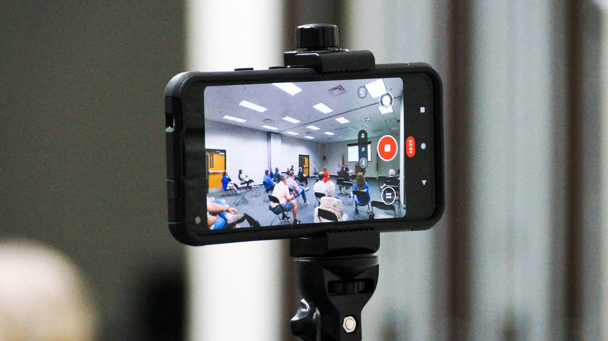 Habersham County PIO Carolyn Gibson livestreams County Commissioner Bruce Palmer's town hall meeting. (Hadley Cottingham/Now Habersham)