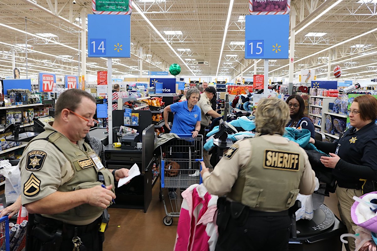 Deputies went shopping with Optimist members at the Walmart in Oakwood on December 17. They bought coats of various sizes and colors.