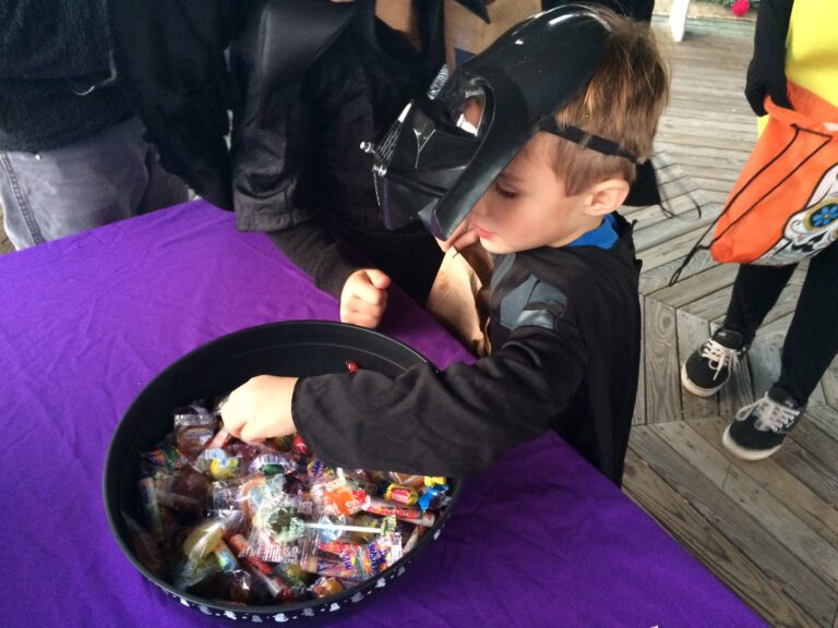 Ask the kids and they’ll tell you the same. 5-year old Tehilla James says, “My favorite part is getting too much candy.” Her big brother David enjoyed filling his bucket with candy but he also enjoyed taking in the sights. “I found familiar people and I found costumes. I found Slenderman who needs to get fatter!” Out of the mouths of babes. Their father, David James, came dressed as Stephen King dressed as Superman. He says, “I love it. It’s a great local event where you can see a lot of local people and interact with people that you know as well as people that you don’t know. The kids get to see friends from school and they get candy and you don’t have to travel a long way.” He says he misses the door-to-door trick or treating of his childhood but sees organized events such as Trick or Treat on the Square as a viable alternative in today’s world. “A place where kids can definitely get the treats without having crazy tricks.”