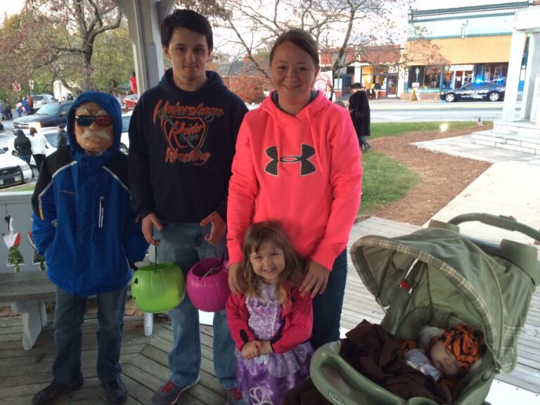 Getting people to return to Clarkesville – at least at Halloween – isn’t a problem. For many families like the Cooks of Mt. Airy, Trick or Treat on the Square is a family tradition. Leah and Cam Cook’s son, Silas, is just one year old but he’s fast becoming a trick or treat veteran. This was his second year spending Halloween on the Square. “It’s good. It’s very easy and safe for the kids,” says his dad. That sentiment was echoed by many other parents. Jackie Baxter of Cornelia says this also was her family’s second year and it won’t be their last. “We love it. We’ll always come.”