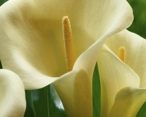 long-lasting cut flowers, Calla Lilies also make fantastic container and landscape plants! Speckled foliage and gorgeous blooms add a touch of elegance wherever they go, and despite their graceful appearance, they’re remarkably easy to grow. Calla Lilies prefer locations with rich, well-drained soil and filtered light or moderate shade. They will burn in full sun, so be mindful when choosing a spot. If you notice water puddles 5–6 hours after a hard rain, you’ll want to find another site or amend the soil with the addition of organic material to improve drainage.