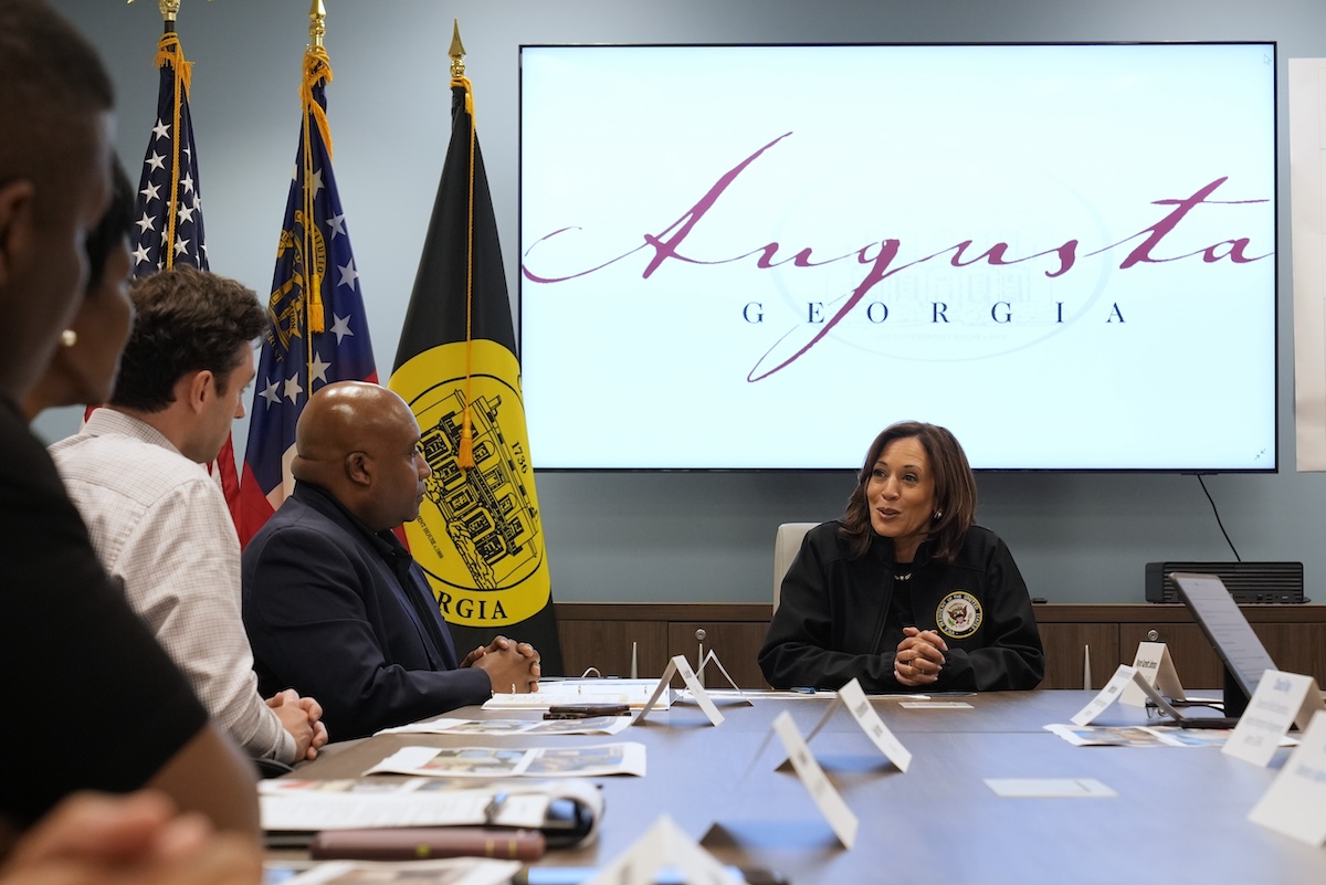 AUGUSTA, Ga. (AP) — Vice President Kamala Harris handed out meals, embraced a shaken family and surveyed Hurricane Helene’s“extraordinary” path of destruction through Georgia on Wednesday as she left the campaign trail to pledge federal help and personally take in scenes of toppled trees, damaged homes and lives upended.