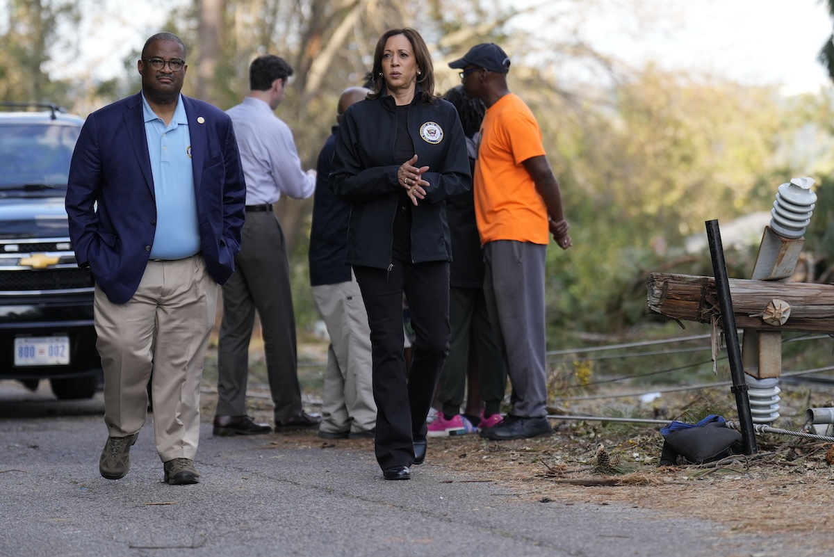 Harris said she wanted to “personally take a look at the devastation, which is extraordinary.” She expressed admiration for how “people are coming together. People are helping perfect strangers.”