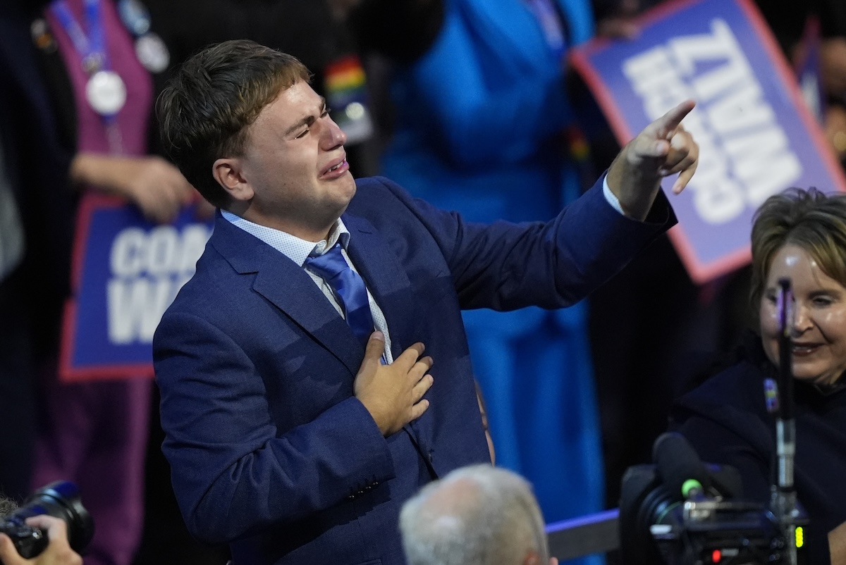 When Walz talked about the difficulty conceiving his daughter, Hope, she made a heart with her hands and held it over her chest. His son, Gus, wept watching his dad speak and at least once shouted, “That’s my dad!”
