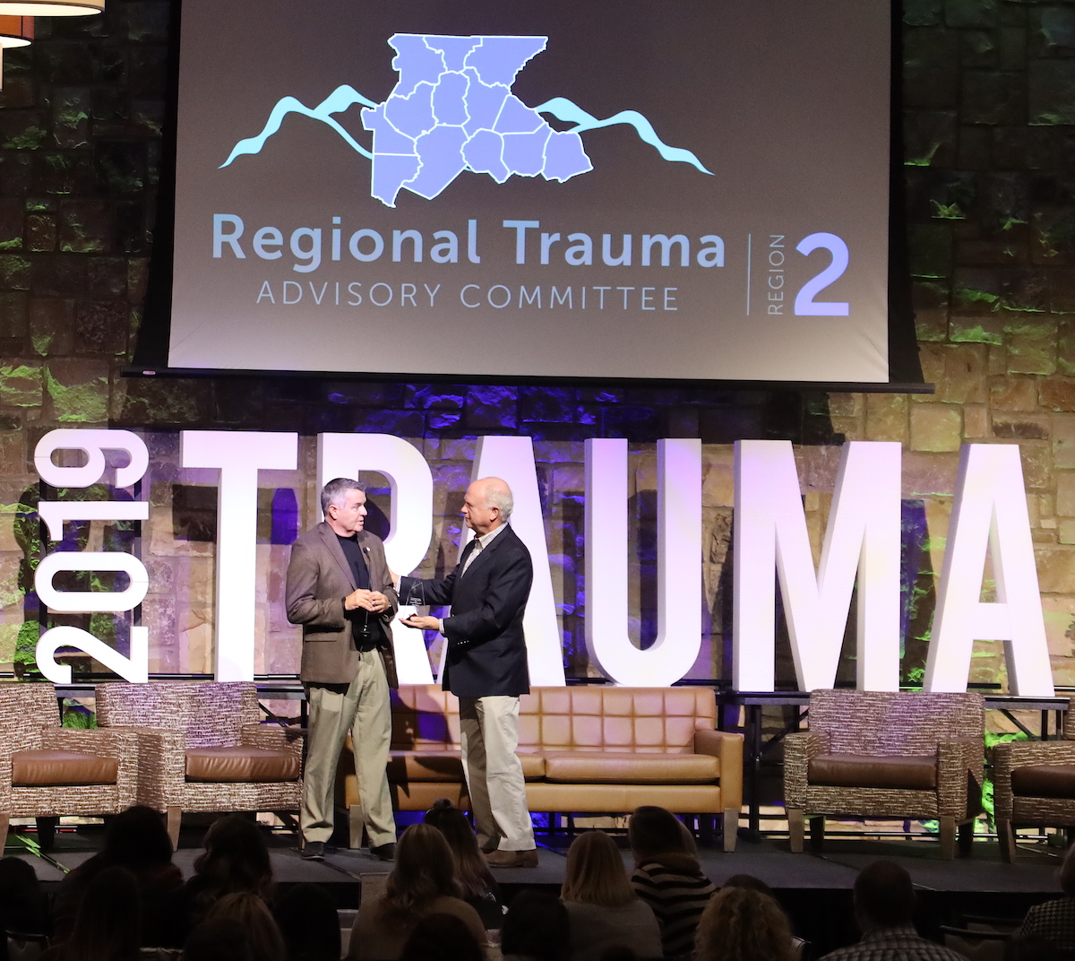 Sen. Butch Miller presents the 2019 Governor’s Award for Trauma Excellence to Habersham County Emergency Services Director Chad Black. (RTAC)