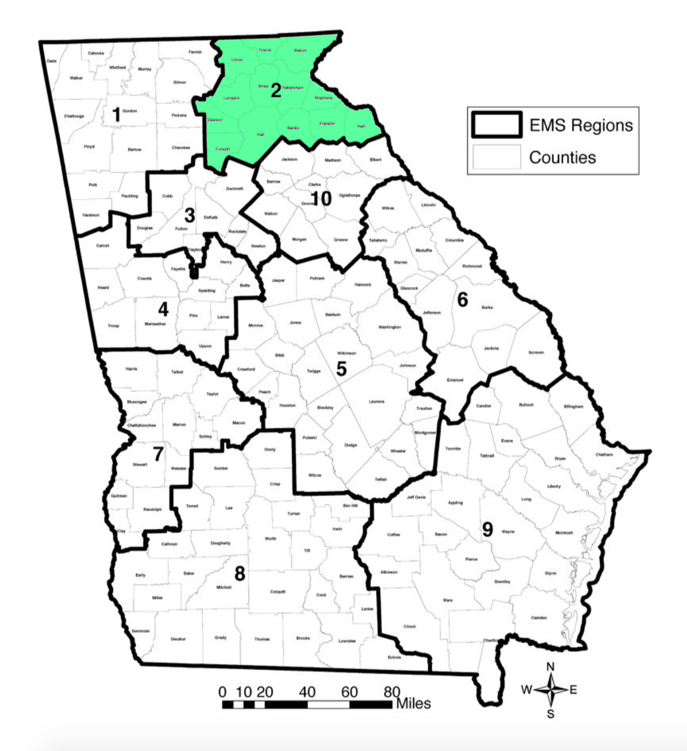 The here to which he’s referring is the far northeast corner of Georgia. It’s EMS Region 2. It includes 13 counties that sit, generally, north of Interstate-85 and east of Interstate-575.