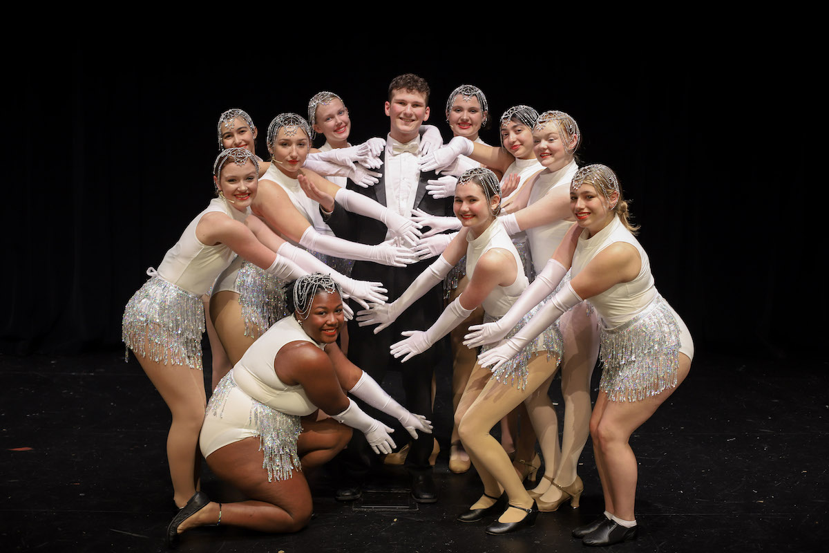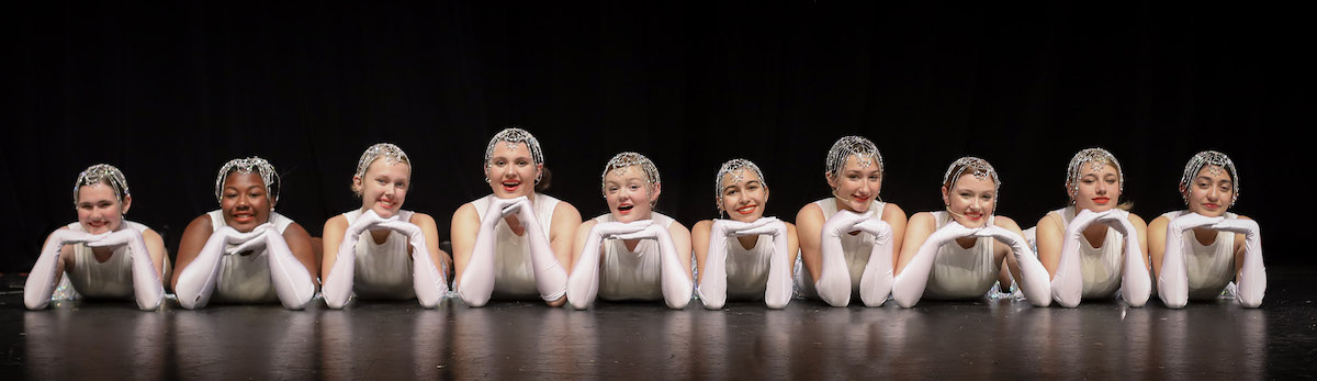 Follies dancers portrayed by Stage Raiders, from left, Madison Taylor, Ebonie King, Gracie Taylor, Abigail Taylor, Elloree Chambers, Jamie Scott, Chaise Arpke, Ashley Jones, Annalee Lewis, Kayla Rummel. (photo by Daniel Purcell)