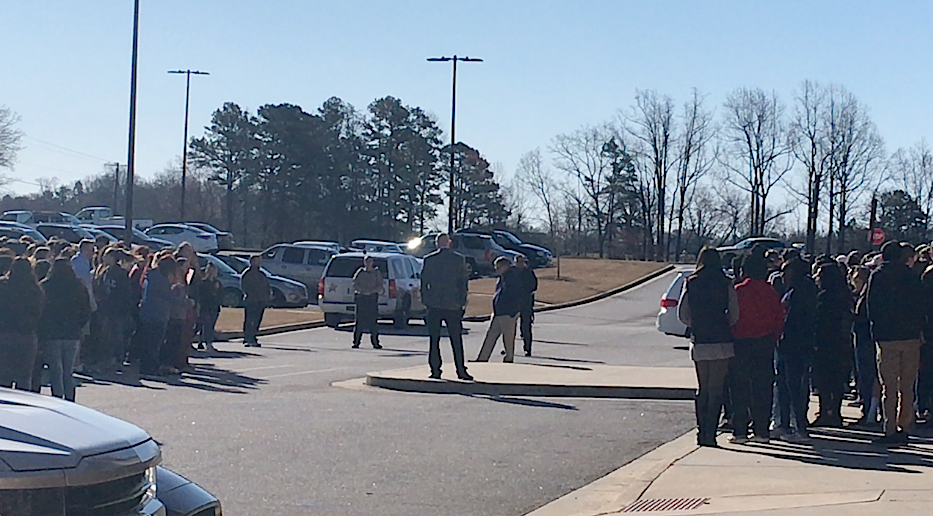 Habersham Central school administrators and law enforcement kept a watchful eye as students began streaming out of the building onto the sidewalks and lawn in front of the school at precisely 9:55 a.m.