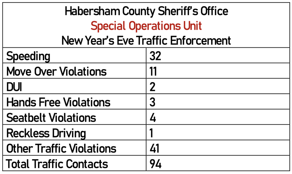 The Habersham County Sheriff’s Office Special Operations Unit had a productive and challenging New Year’s Eve as they ramped up efforts to ensure road safety across the county. Deputies focused on traffic enforcement, with an emphasis on Georgia’s Move Over Law and other traffic safety violations.