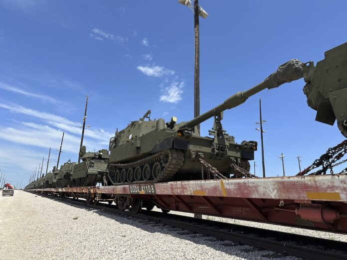 The Army was putting 28 M1 Abrams main battle tanks onto rail cars at Fort Cavazos in Texas on Wednesday. The tanks weigh more than 60 tons apiece and will take about nine or 10 days to travel by rail to Maryland, where they will be loaded onto trucks to be driven into Washington, D.C. and offloaded at a staging area near the Lincoln Memorial.