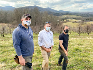 From left, Josh Fuder, Ray Covington, and Stephen Mihm have been UGA’s driving forces behind the creation of the Heritage Apple Orchard. (Photo by Mike Terrazas)