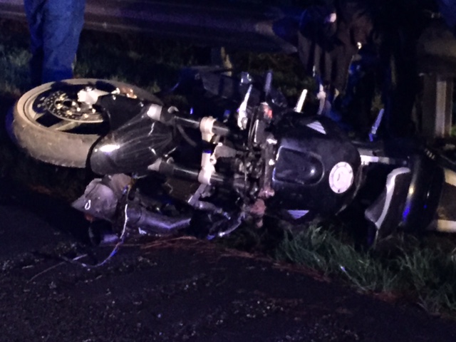 One man is in the hospital following a late night high speed chase with police that ended when he wrecked his motorcycle on State Route 365 in Demorest. Georgia State Trooper 1st Class Aaron Church says the unidentified suspect fled from Rabun County authorities when they attempted to pull him over for not having a tail light. Church says he picked up chase as the motorcycle passed by Tom Bowen Road at GA 15 in Hollywood. He says at one point during the chase he clocked the motorcycle going over 120mph. “I attempted to stop him. He refused to stop and we chased him all the way down here to just south of Demorest-Mt. Airy Highway when he ran into a patrol car and flipped over.”