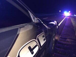 The motorcycle and driver came to rest on shoulder of Hwy. 365. Close to a dozen emergency responders and law enforcement officers converged on the scene. Both southbound lanes of the highway were closed for nearly an hour as the suspect was taken away and the scene cleared. The road reopened shortly before 12:30am on Monday.