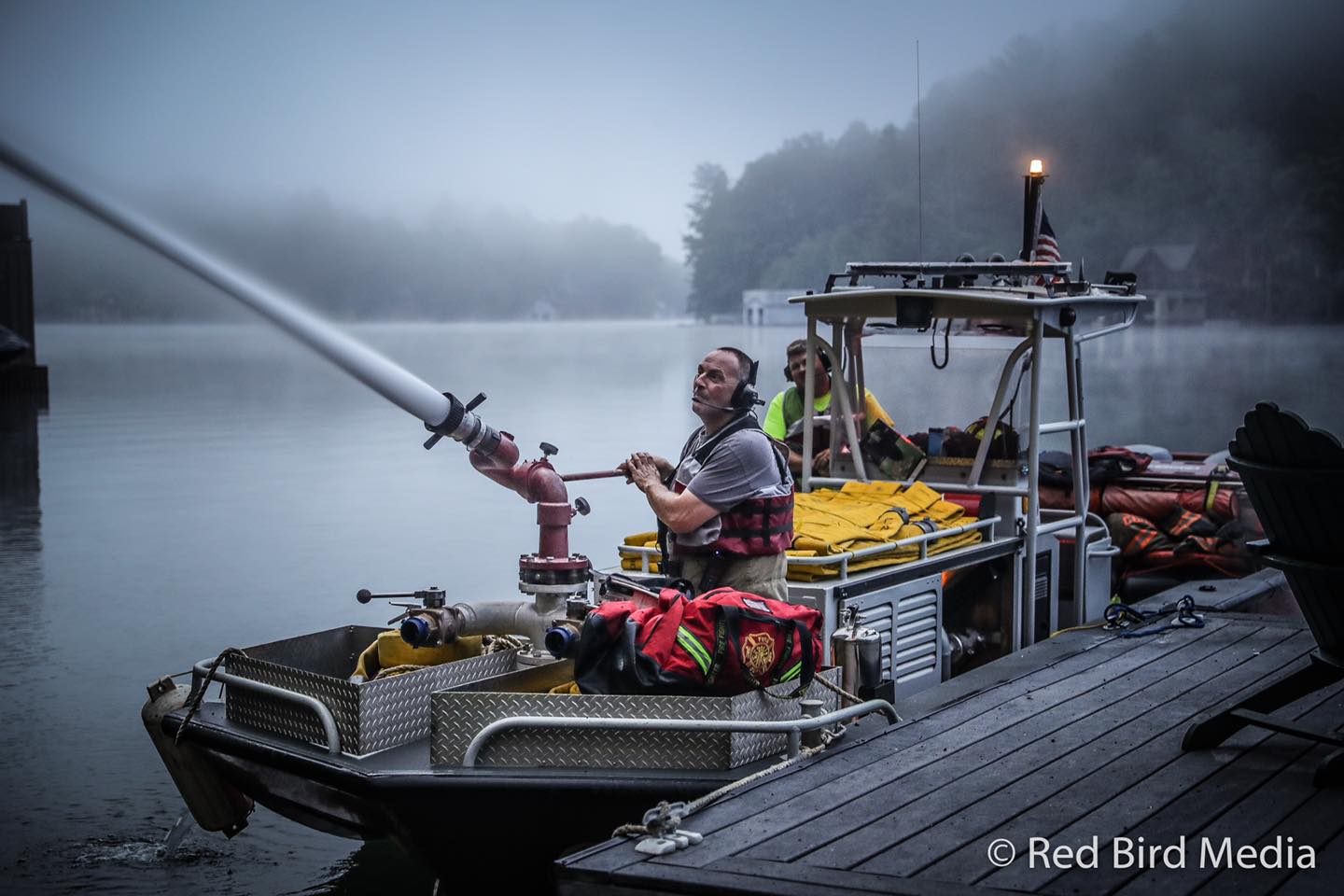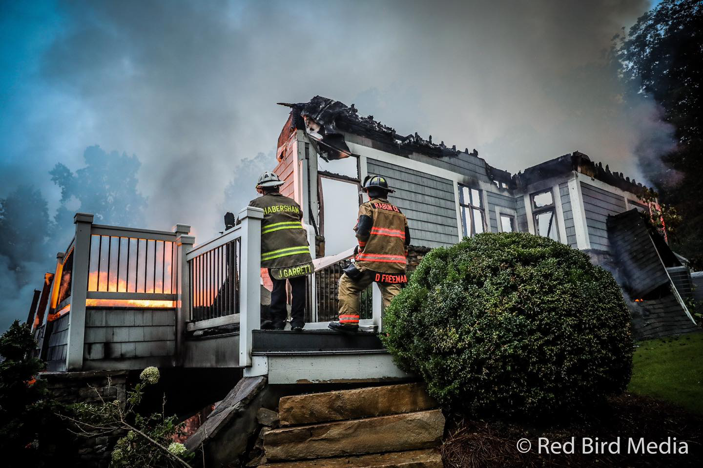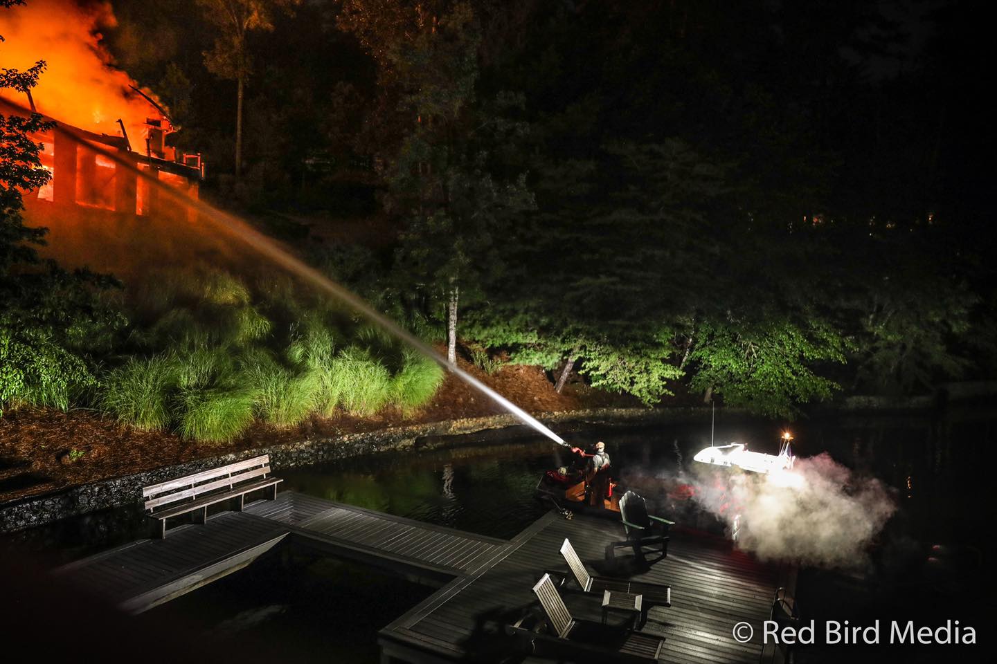 When units arrived on the scene, the 4000-square-foot lake house was fully involved. Due to the fire’s location and the fact half their crew was working another structure fire on the other side of the county, Rabun County Fire Services requested mutual aid from Habersham County Emergency Services. Lee Arrendale firefighters also responded.