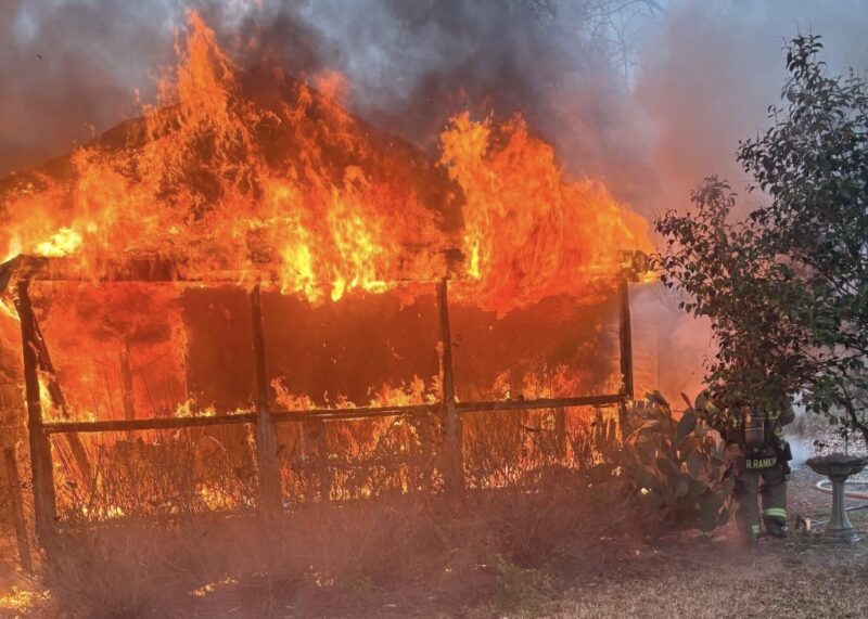 Athens-Clarke County firefighters responded to the house fire on Old Jefferson Road Saturday, Feb. 15, arriving on the scene at 10:23 a.m. to find heavy flames and thick smoke coming from the front of the two-story home.