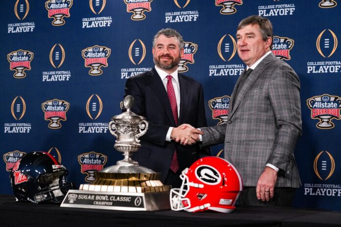 NEW ORLEANS — The road to the College Football Playoff semifinals runs through New Orleans tonight as the Georgia Bulldogs face the Ole Miss Rebels in a Sugar Bowl quarterfinal matchup.
