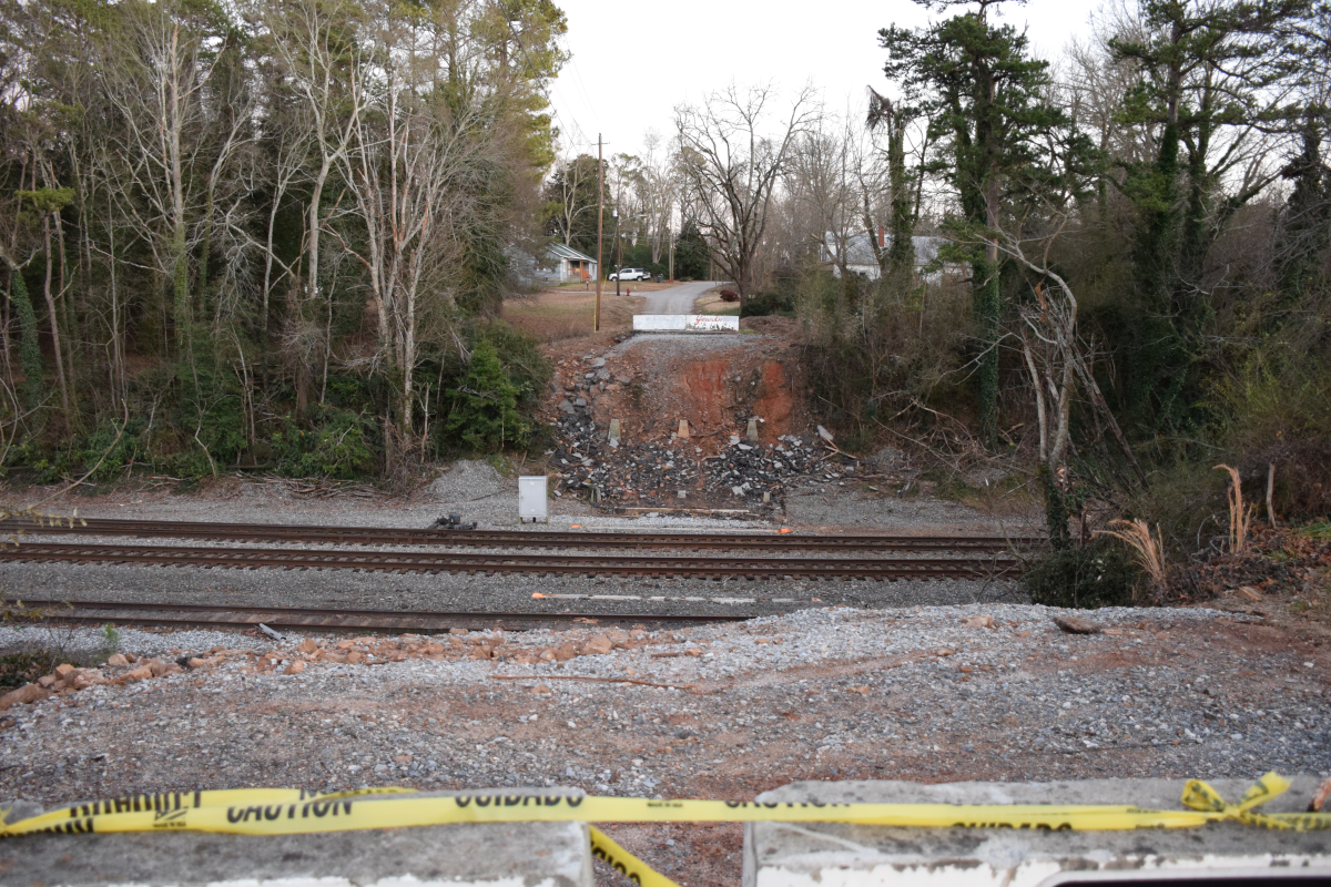In December, Norfolk Southern Railroad removed the well-worn cut-through bridge that led from one side of town to the other. The railroad is now in the process of cleaning up the remaining debris. Norfolk Southern (NS) is waiting for material to be delivered to permanently block off Hoyt Street and make it safe for residents and the traveling public. Right now, concrete barricades are blocking both ends of the roadway where the bridge once stood.