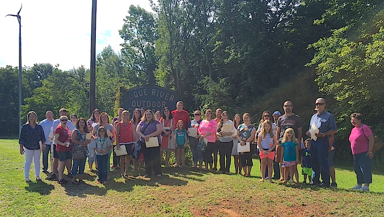 Featured photo: A group of parents stop for a picture while touring the outdoor classroom at NHMS as part of a tour of the school’s facilities.