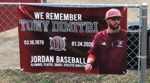 Phillip and Heather Clark were co-sponsors of the vigil. Phillip Clark said “I played for Coach Anthony Dimitri and then our son got to come and play for Tony. The Dimitri name is synonymous with Jordan baseball. It just felt like it was something that had to happen. The name means too much here for it to not go honored.”