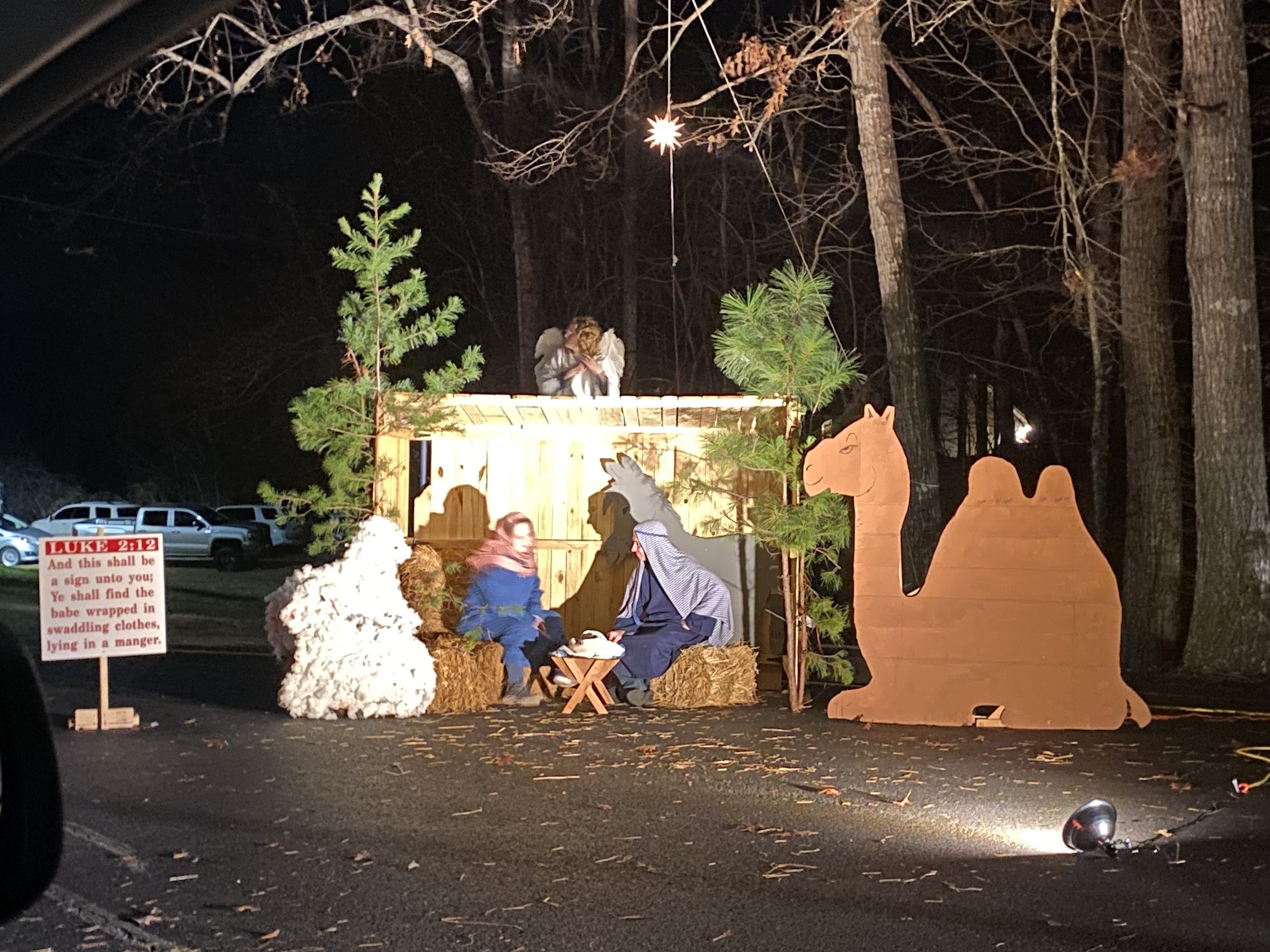 Visitors were greeted with fresh homemade bread and hot chocolate as they drove through the ‘marketplace’ on their way to the Nativity. From the manger scene depicting Christ’s birth in Bethlehem to the final scene showing his ascension into heaven, each setting had signs with scripture explaining to visitors what was being portrayed. The church also set up a transmitter so that visitors could tune into their car radios and hear Penland share the story of Jesus’ life.