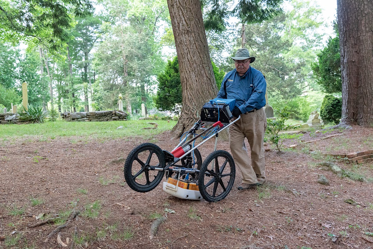 Strozier spent May 24-25 working at the Old Clarkesville Cemetery, using ground-penetrating radar to confirm speculation there are many unmarked burial sites at the historic landmark.