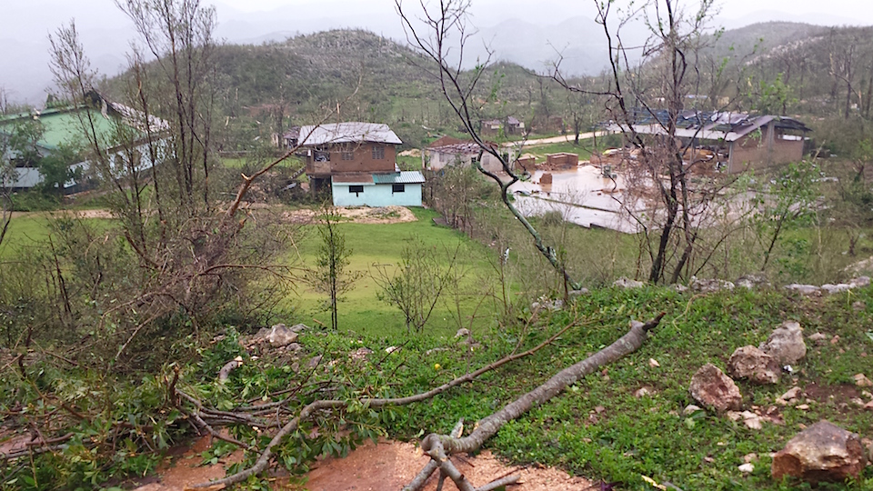 The campus is in the mountainous region between Les Cayes and Pestal, a once beautiful piece of property surrounded by mountains and trees, now pummeled into timber. “What used to be impossible to see is now visible for miles,” Pastor Mike added. “Villages are several feet under water. 95% of all homes are gone. Crops destroyed, livestock dead, and people, the most valuable of all possessions, in complete and total desperation.”