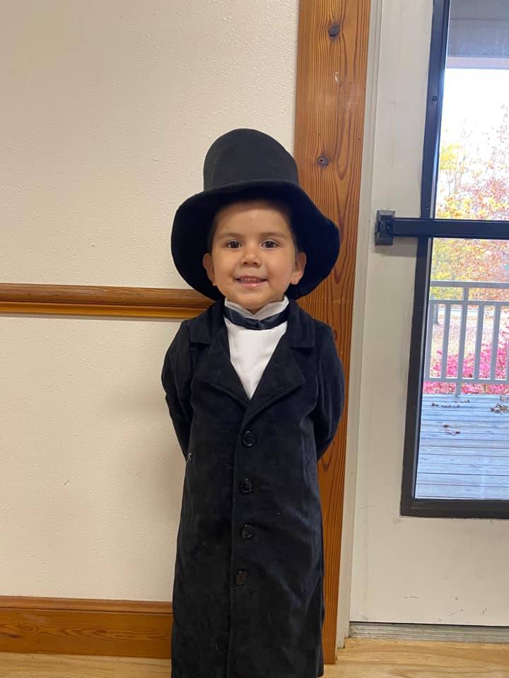 “When going through all the costumes we had, Canaan found the Abe Lincoln one and wanted to be that for Halloween,” she says. “He also thinks it looks like a magician so sometimes he would say he was a magician instead of Abraham Lincoln.”