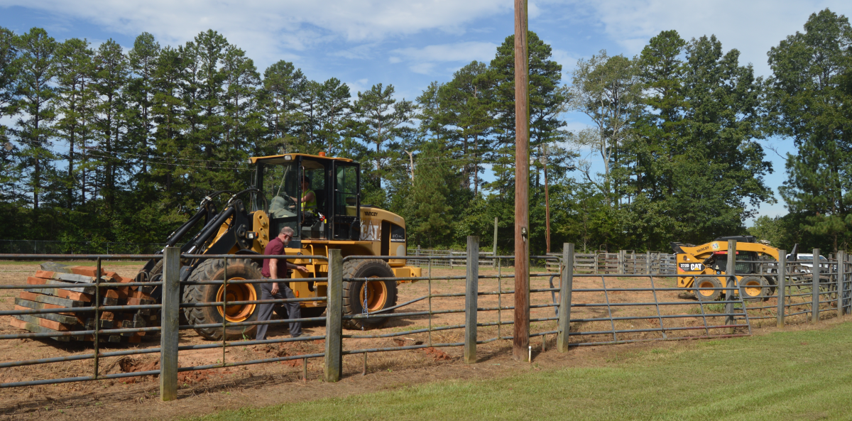 Remy, one of the camels owned by Hog Diggity Dogs and More, joined Tullis and her husband, Adam, for Now Habersham’s photo shoot outside the fair’s rodeo ring. Inside the ring, Habersham County Road Department crews worked to replace worn-out fencing ahead of next week’s competition.