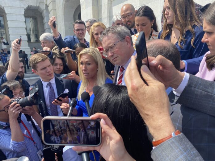 WASHINGTON (States Newsroom) — Georgia Republican Marjorie Taylor Greene of Rome and Kentucky’s Thomas Massie left a meeting with U.S. House Speaker Mike Johnson on Tuesday, saying the “ball is in his court” on whether they hold a floor vote to remove him from leadership.