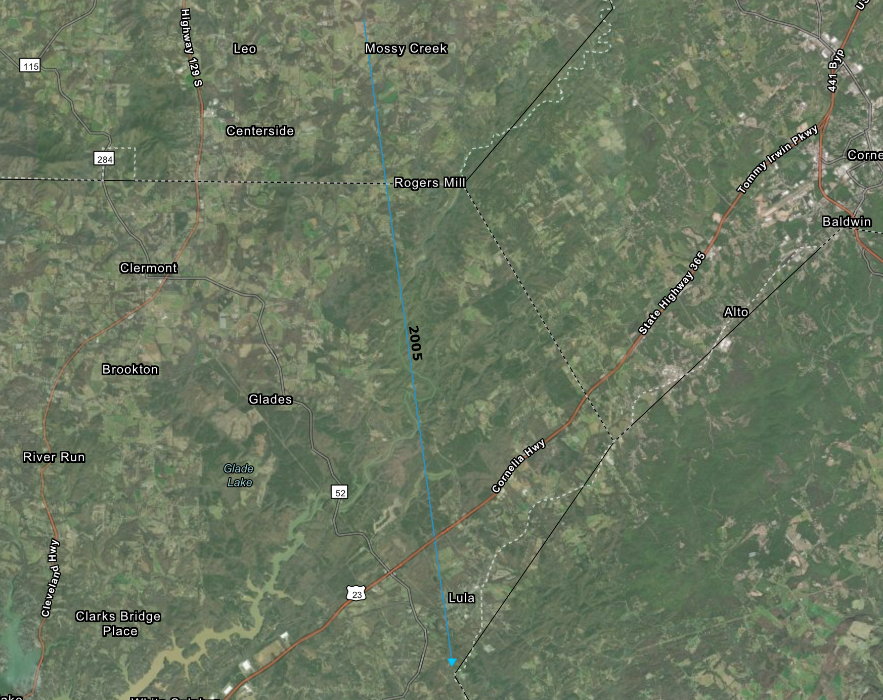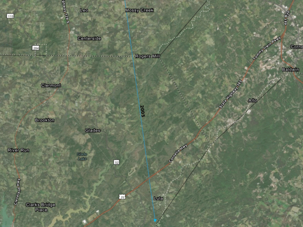The first tornado touched down just before midnight near Lula. This tornado would later be rated an EF-0, but was the longest tornado track in the state that day/night. The tornado tracked from near Lula to the Mossy Creek area of White County. The tornado was on the ground for an astonishing 10 miles and damaged countless trees, including some that fell on homes. The maximum width of this tornado was 50 yards.