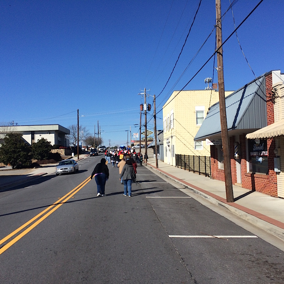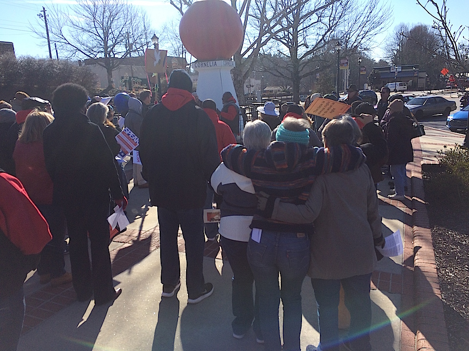 King’s message of freedom, equality, justice and love was at the center of Sunday’s event which began at the Big Red Apple monument in downtown Cornelia. Sunny skies and frigid temperatures greeted the walkers, but the cold didn’t stop them. Wrapped warmly in jackets, hats, scarves and gloves, they made their way down north Main Street, crossed over to MLK Jr. Drive and ended up at Shady Grove Baptist Church, just under a half-mile away.