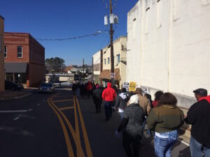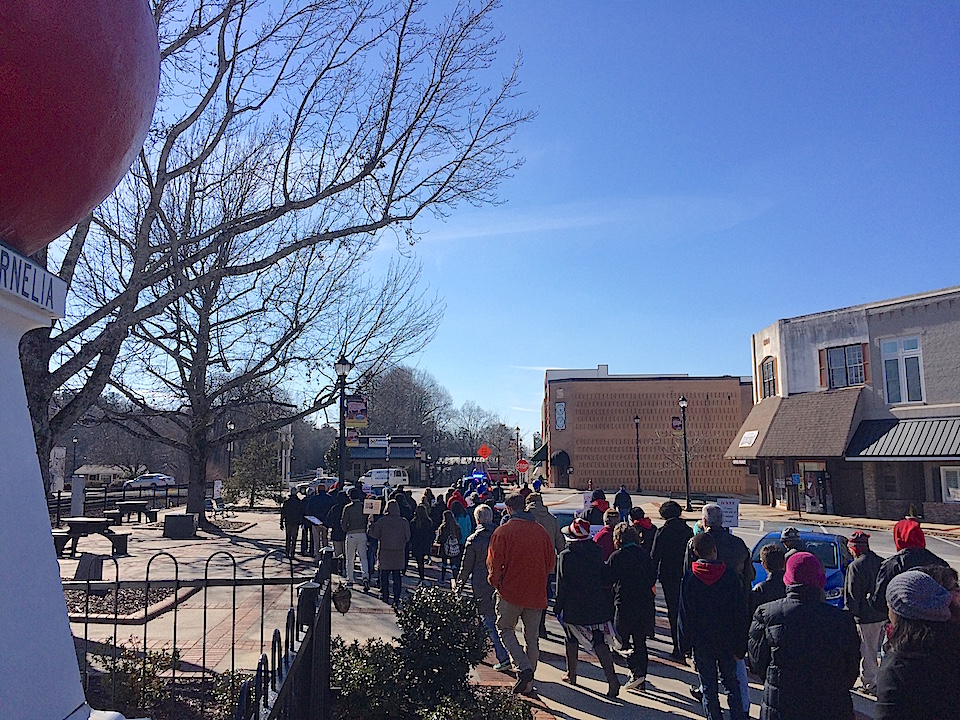 Dozens gathered in frigid temps under sunny skies to participate in the 32nd annual MLK Peace Walk and Celebration Jan. 14th in Cornelia. (photo/Donna James)