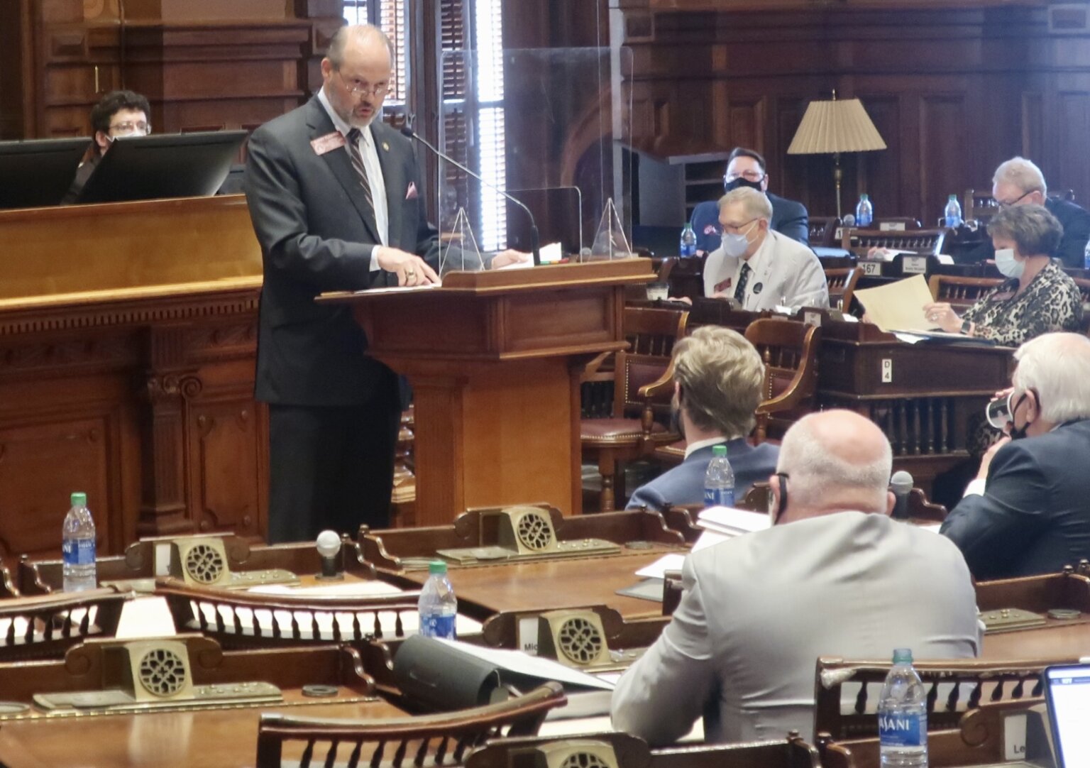 Opponents called out the bill for restricting drop boxes to inside early voting locations except during a public health emergency, punishing people for casting out-of-precinct provisional ballots, and making it a crime to pass out water and snacks while voters wait in lines.