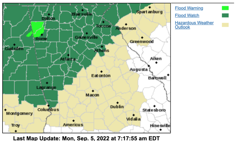 — NWS Atlanta (@NWSAtlanta) September 5, 2022