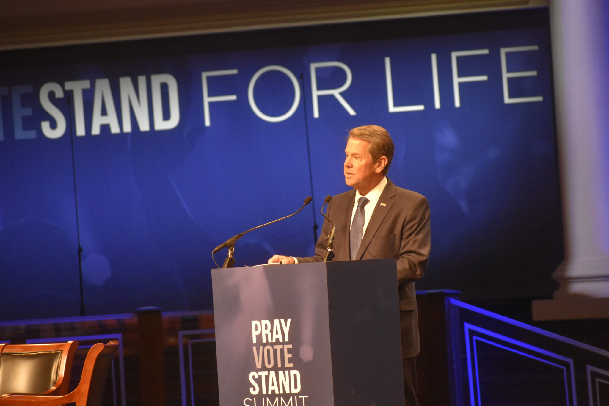 Gov. Brian Kemp stuck mostly to his campaign script Thursday morning as he gave a speech to the Family Research Council’s 2022 Pray Vote Stand for Life Summit in Atlanta that was long on his past accomplishments but short on the abortion policies he would pursue if re-elected.