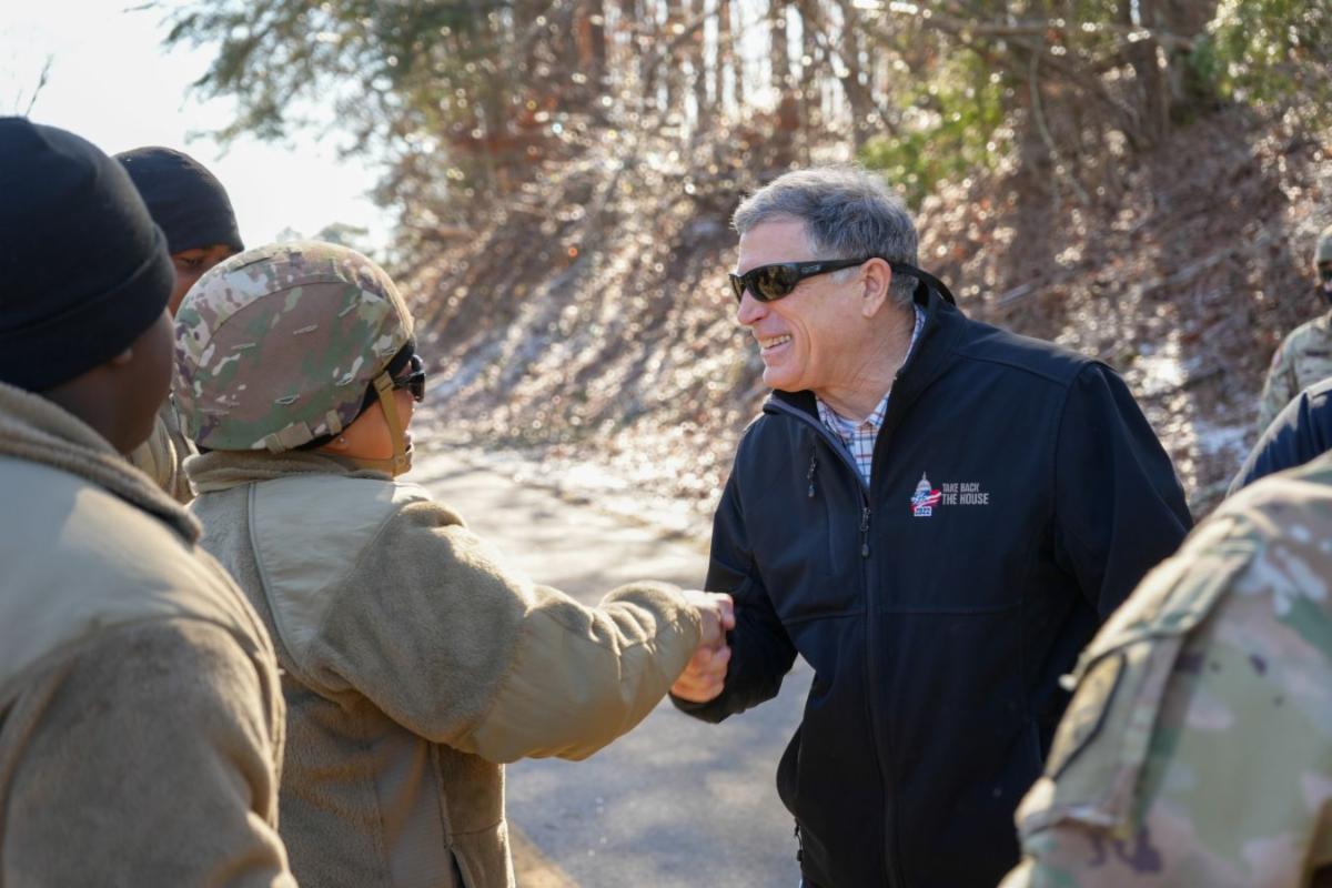 Rep. Clyde thanks Georgia National Guard troops deployed to White County during Winter Storm Fern. (photo submitted)