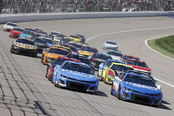 Even though Larson spent most of a hot, sunny day at Kansas in the lead, he found himself trailing Chase Elliott early in the final stage. But when Elliott’s team dropped the jack too soon before his right rear tire was on during a pit stop, Larson was able to get back to the front on the restart, and he spent the last 50 laps cruising to the checkered flag.