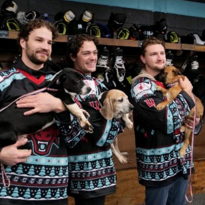 Before the hockey game, the community is invited to meet adoptable dogs and puppies at 4:00 p.m. in the Civic Center Courtyard between the Civic Center and the Ice Rink. The pre-adoption process will take place before the game, and adopted dogs will be picked up after the game in the same courtyard area, where final paperwork will be completed. Door Specialties, Inc will fully cover all adoption fees.