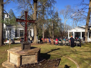 We walked from the gazebo on the Clarkesville square to Grace Calvary Episcopal Church. Bishop Ernest Burns welcomed us and urged us to walk with someone we didn’t know. He challenged us to reach out and connect as we trekked to the church. Habersham County law enforcement was there to direct us safely over the highway as we followed the leaders, singing and talking and laughing and rejoicing all the way.