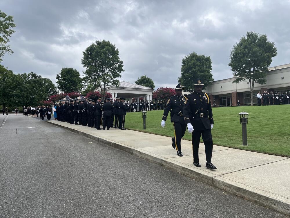 Hundreds of law enforcement officers from DeKalb County and the surrounding region filled the church. CDC employees also attended. Local officials and Georgia Gov. Brian Kemp attended. Rose’s young daughter leaned on his wife’s shoulder with blue bows in her hair and a shirt that said, “My daddy is my hero.”