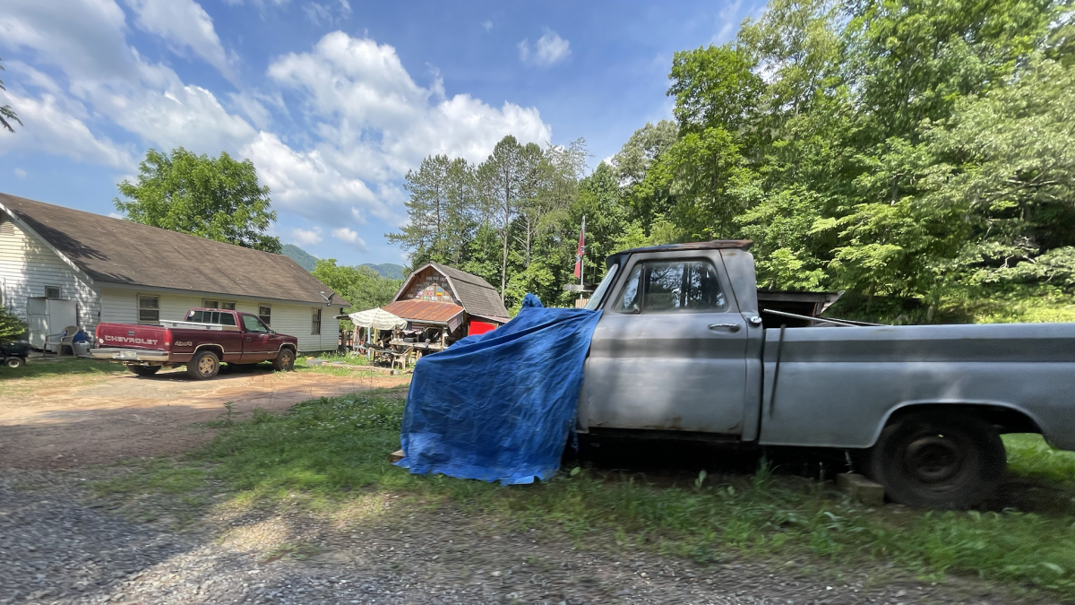 Christopher Shields’ residence on South Tryphosa Road in Otto, NC. The shed where Tina Walkingstick Frizsell was shot and killed is in the foreground. (Kyle Perrotti/Smoky Mountain News)
