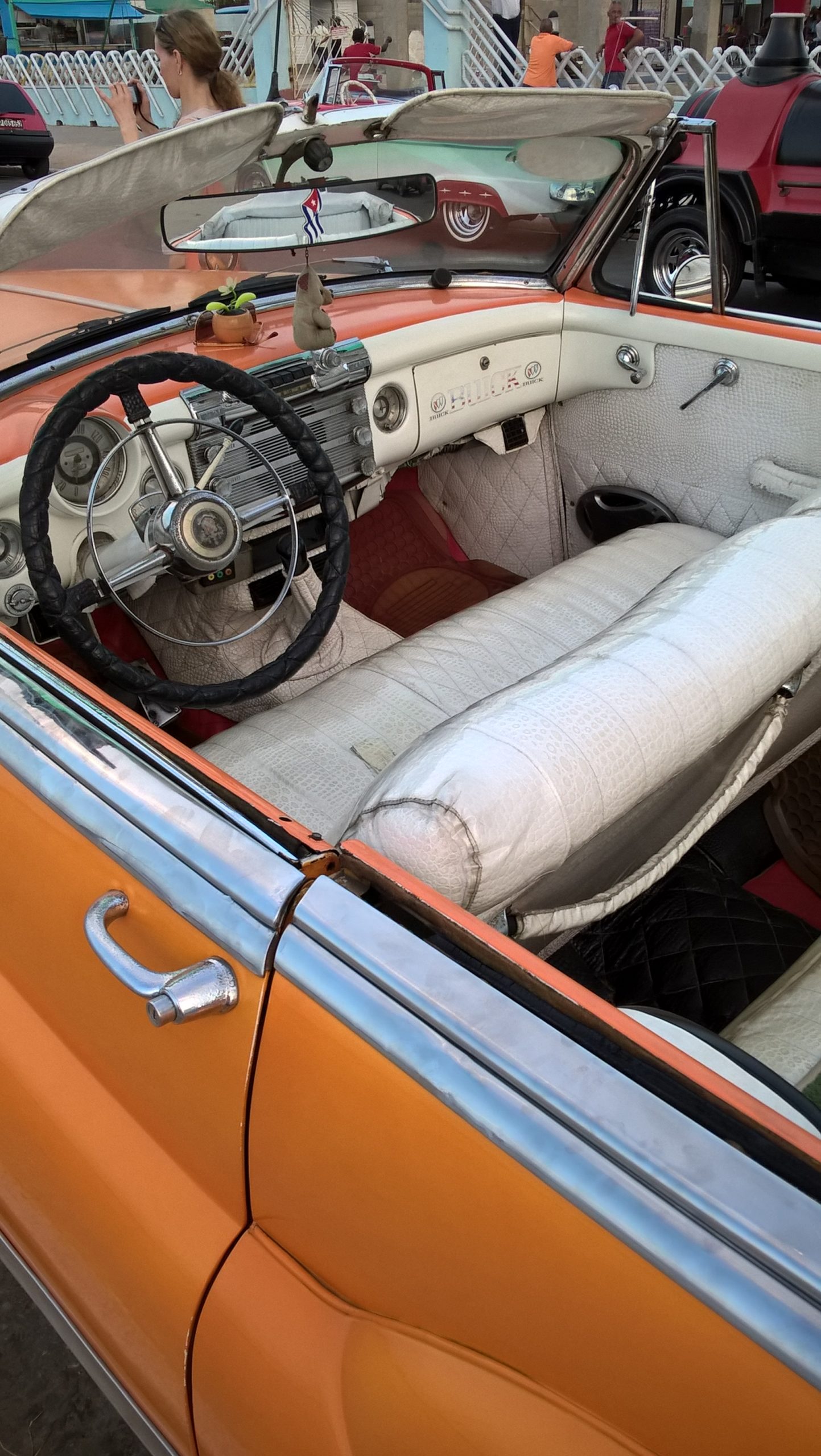 WP_20160316_19_32_22_ProSo, one has to ask the question: Where do classic American car owners in Cuba obtain engine and body parts for 1940s and 1950s American made automobiles, during a 56 year embargo on anything shipped outside the US? Cuban metal fabricators, metal shops and machinists have been busy making fenders, bumpers, clutch assemblies, and repeated valve jobs on engines for six decades. In addition, parts you can not see, brakes, mufflers, carburetors, air conditioners have been borrowed from Russian and European made cars. Ingenuity is the mother of invention. And the cars look great!