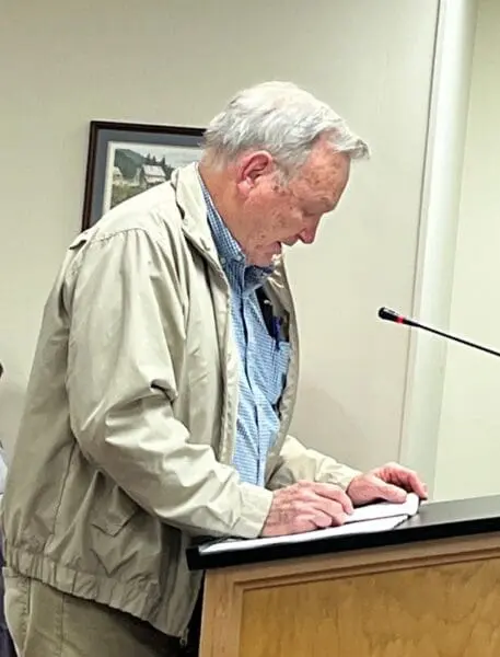 Former commissioner Terry Goodger speaks at the White County Commission meeting on Monday, April 7, 2025. (Dean Dyer/WRWH.com)