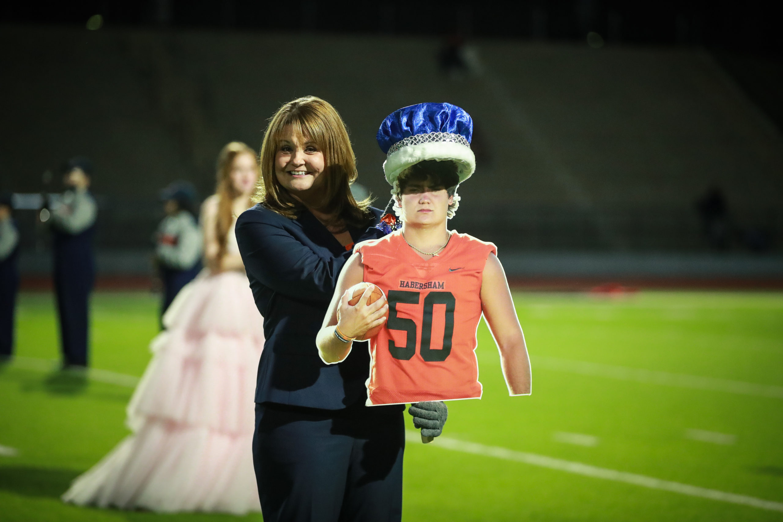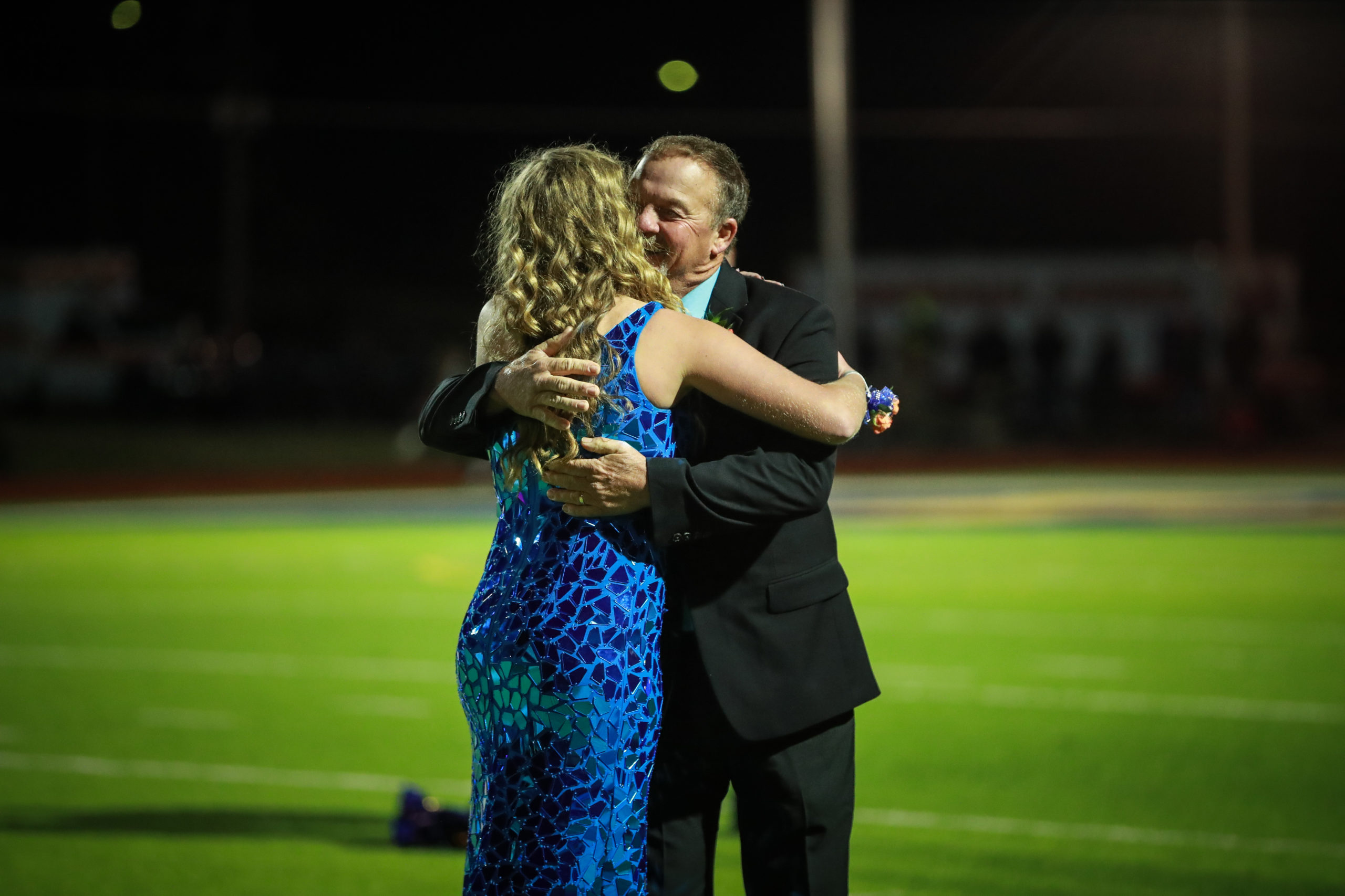 Hix’s father escorted her onto the field where they stood along with the rest of the Homecoming Court waiting for the announcement during halftime. Wade’s mother brought a stand-in for her son who’s a defensive end on the Raider football team.