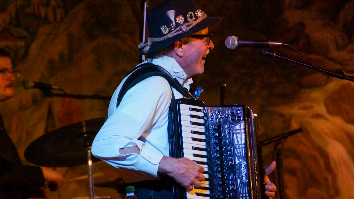 The Festhalle band struck up a number of polka-fied popular tunes, from the “Chicken Dance” to the Beatles. Attendees danced along, filling the Festhalle with a huge conga line halfway through the night.
