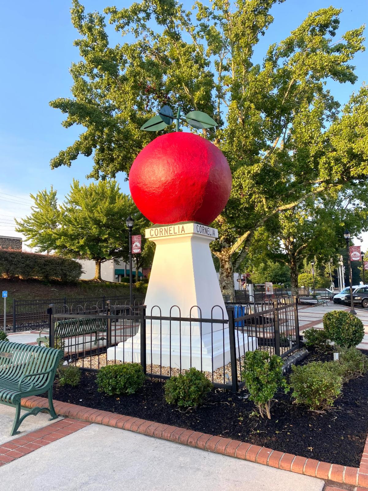 The monument was constructed in Winchester, Virginia, and shipped to Cornelia by train. It has long been the town’s symbol and local gathering spot for the annual Big Red Apple Festival, which takes place each fall.