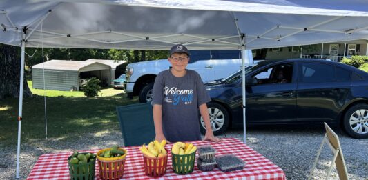 A young entrepreneur sets up outside his home in Clarkesville with fresh vegetables he grew in his garden. Colton Braswell sells corn, yellow squash, cucumbers and more on Mondays and Thursdays. His vegetable stand is located on the Toccoa Highway a few miles past the Habersham County Fairgrounds. Stop by and enjoy! Print Article