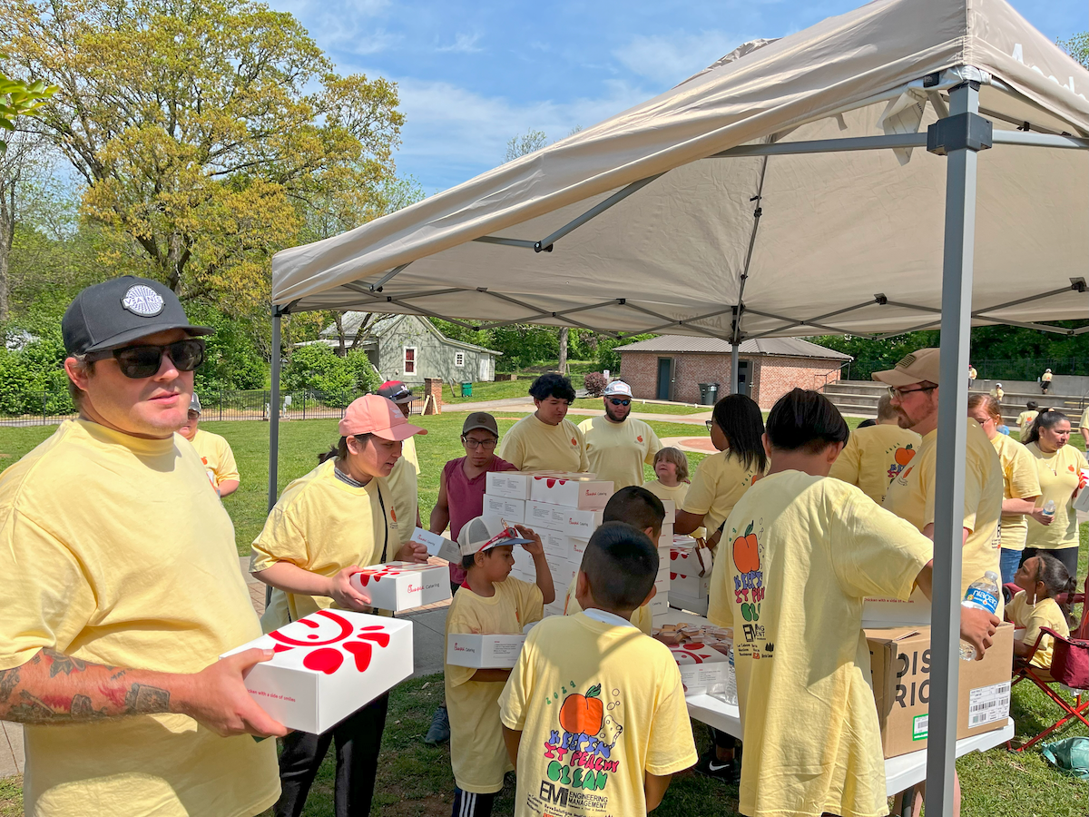 Fostering that sense of community pride, each year, the city asks Baldwin Elementary School students to submit artwork for the annual volunteer t-shirt to go along with the event theme, “Keepin’ it Peachy Clean.”