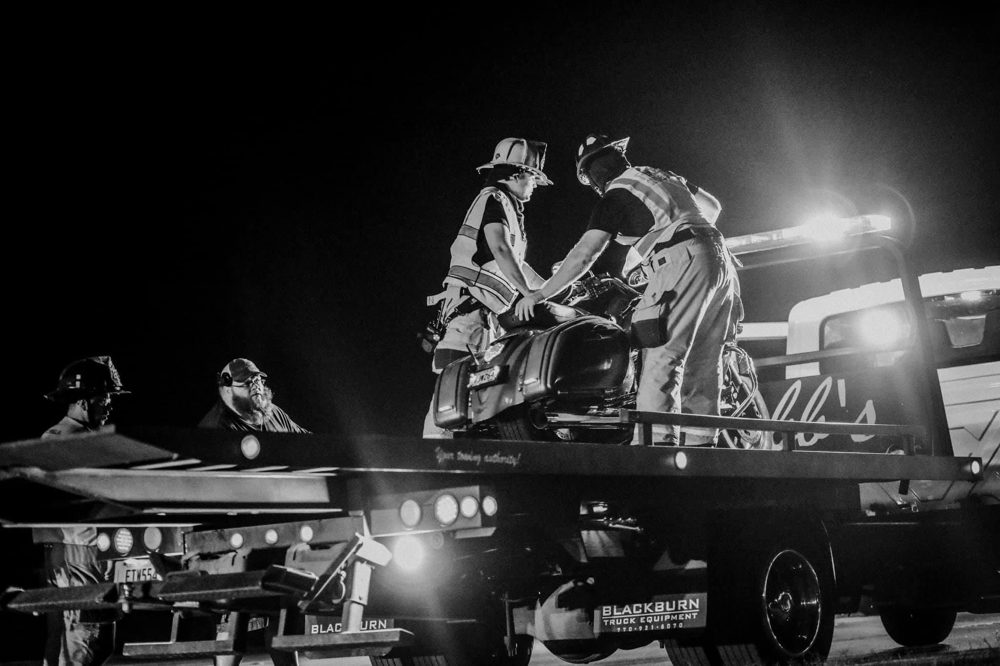 In these photos, you can see a few members of Cornelia Fire assisting a tow truck driver load and secure a motorcycle after a wreck.