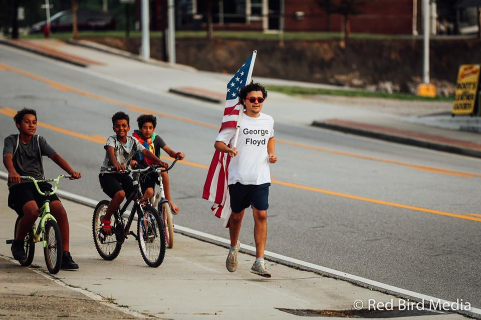 As Daniel Vega made his way through the streets of Cornelia, the flag on his shoulder and the name on his t-shirt said it all: George Floyd.